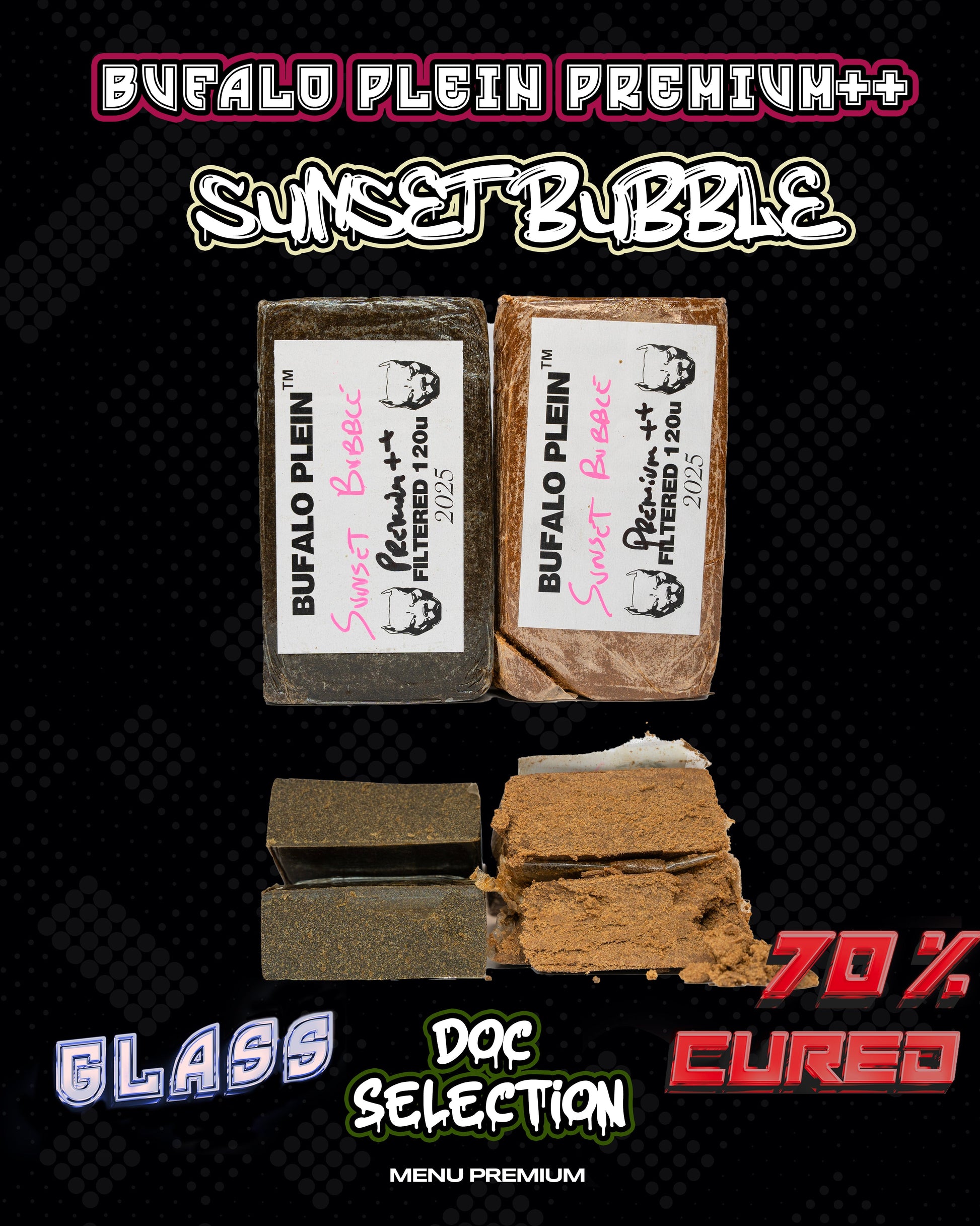 Considerazioni Finali -ย In sintesi, i formati 120u Premium, by Bufalo Plein, ricavati da polveri dello strain Sunset Bubble, si distinguono per il loro eccellente rapporto qualitร /prezzo, come tutta la linea Bufalo Plein. Con il loro profilo aromatico fruttato e vivace, che richiama le note dolci del bubblegum e dei frutti di bosco, arricchite da delicate sfumature agrumate e da un retrogusto morbido che ricorda un tramonto sereno, e con effetti che spaziano dalla stimolazione mentale al rilassamento fisico, questo concentrato Premium rappresenta una scelta dโeccellenza per chi desidera esplorare nuove dimensioni nel consumo di cannabis. Come sempre, si consiglia di iniziare con dosi moderate per apprezzarne appieno le qualitร uniche.